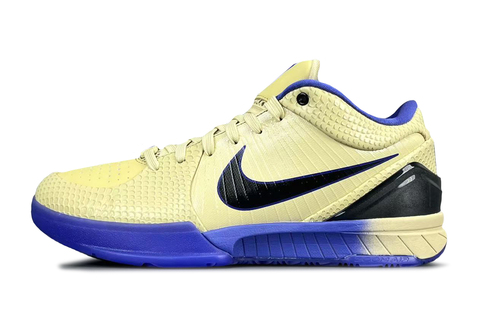 Четвёртые именные кроссовки Коби Брайанта Nike Zoom Kobe 4. Изначально модель вышла в 2009 году и переиздаются по сей день. Мы видим низкий массивный профиль с классической шнуровкой. Носовая часть выполнена из плотной кожи, по бокам ткань Flywire для лучшей вентиляции. В области пятки установлена пластиковая накладка для поддержки стопы. В подошве расположен зарекомендовавший себя баллон Air Zoom, а так же пластина придающая жёсткость конструкции. Баскетбольные кроссовки Nike Zoom Kobe 4 отлично подойдут для атакующих защитников. Кроссовки баскетбольные FC Barcelona x Nike Kobe 4 Protro 'Team Gold', вы можете купить на сайте Basketroom.ru