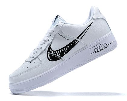 Классические низкие кроссовки Nike Air Force 1 Low - это визитная карточка компании Nike. Свое название кроссовки получили в честь 'борта номер 1' президента США. Это легендарная модель в которой впервые применилась технология Air. Кроссовки сразу же понравились профессиональным спортсменам и баскетболистам за счёт своей удобной посадки и отличной амортизации. С 1982 года, Nike Air Force 1 Low выпускаются без изменений в классическом белом и черном цвете. В наше время кроссовки так же любимы и желанны. 'Сникеры' отлично подойдут для повседневной носки и занятием спортом. Купить женские кроссовки Nike Air Force 1 Low 'Sketch', вы можете в баскетбольном интернет-магазине Basketroom.ru